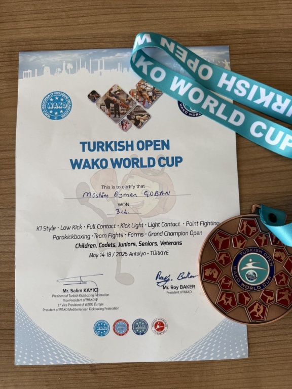 14-18 Mayıs tarihleri arasında Antalyada, 41 ülkeden 3500 sporcunun katılımıyla düzenlenen 10. Turkish Open Wako Dünya Kupası’nda öğrencimiz Müslüm Eymen Çoban 57 Kg Full Contact branşında Dünya 3’üncüsü Olmuştur. Tebrik ediyor başarılarının devamını diliyoruz